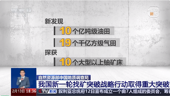 新一輪找礦突破戰(zhàn)略行動(dòng)實(shí)施以來,各地聚焦大宗緊缺和戰(zhàn)略性新興產(chǎn)業(yè)礦產(chǎn),圍繞重點(diǎn)成礦區(qū)帶和重要含油氣盆地,實(shí)現(xiàn)了一系列重大找礦突破,西部地區(qū)新增一批能源資源基地,中東部老資源基地資源基礎(chǔ)進(jìn)一步夯實(shí)。