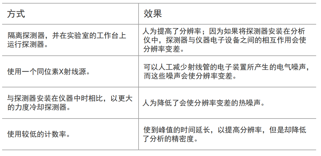 在比較不同的分析產(chǎn)品時,某些供應(yīng)商會強調(diào)打動人心的分辨率數(shù)值,但是這些數(shù)值的背后往往掩蓋了更多的事實。在許多情況下,這些供應(yīng)商只是援引了制造X射線探測器的公司提供給他們的分辨率數(shù)值。而探測器制造商一般是在理想條件下、隔離的環(huán)境中測量分辨率。如果想要了解分析儀在實際操作條件下的性能,就要看在實際操作條件下,X射線探測器已被安裝在分析儀中時所匯報的分辨率。