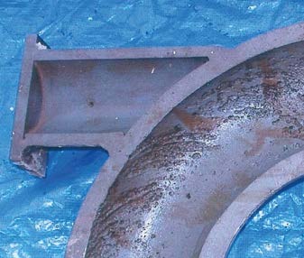 碳鋼工藝管道的內(nèi)表面上會(huì)自發(fā)形成一個(gè)保護(hù)性氧化層(四氧化三鐵銹層或赤鐵層)。在管道內(nèi)水流的高速?zèng)_刷下,這個(gè)氧化層可能會(huì)被沖掉。雖然管道材料會(huì)試圖重新生成一層氧化物,但是由于水流的高速?zèng)_刷,這層氧化物也會(huì)被沖掉。這種腐蝕現(xiàn)象被稱(chēng)為流動(dòng)加速腐蝕(FAC)。來(lái)自彎頭、三通和異徑管接頭等管件的紊流往往會(huì)使流動(dòng)加速腐蝕變得更為嚴(yán)重。