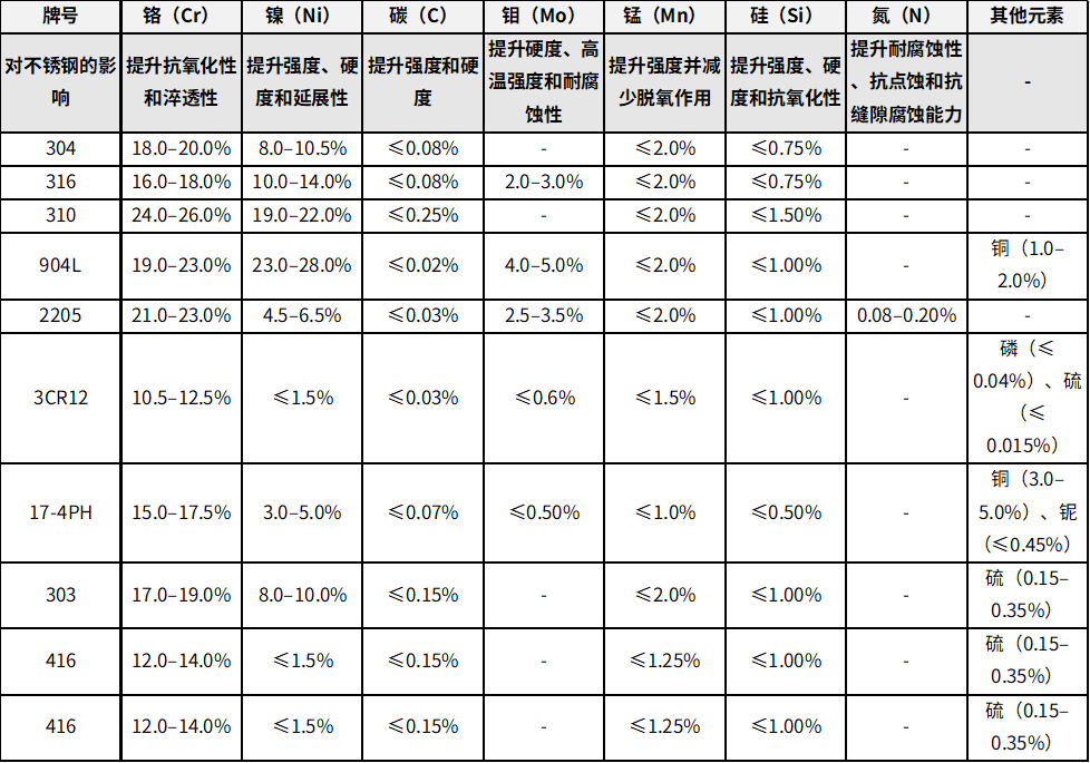 不銹鋼化學(xué)成分對其性能起著決定性作用,影響產(chǎn)品的使用表現(xiàn)、成本及使用壽命。了解關(guān)鍵影響因素并核實(shí)準(zhǔn)確的化學(xué)成分,能幫助你為特定應(yīng)用場景選擇更優(yōu)方案。