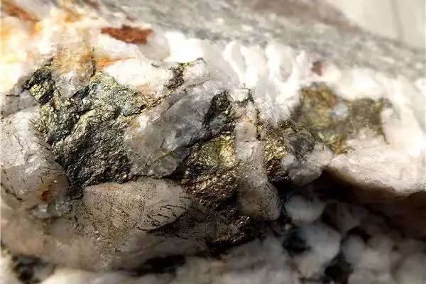 產在石英中間的黃銅礦
