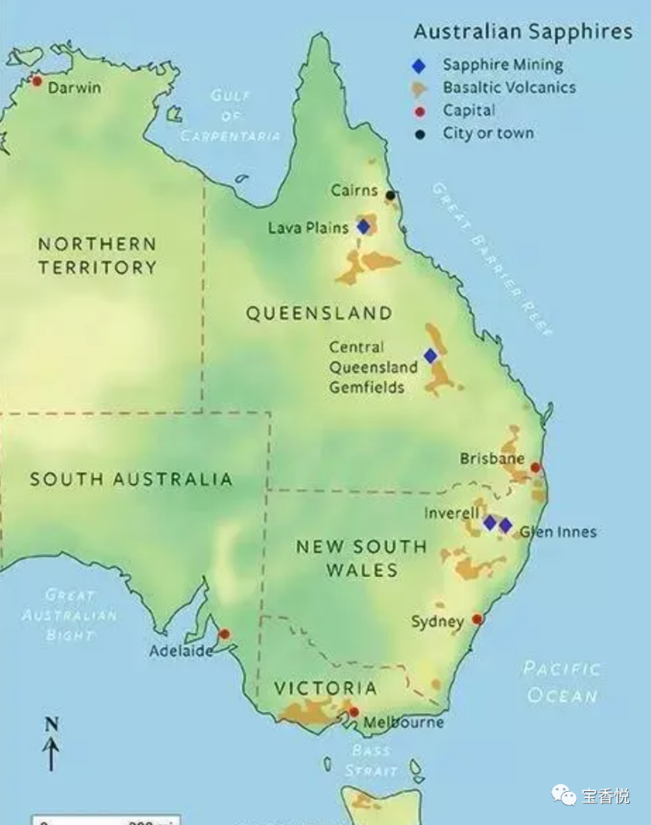 昆士蘭州的安納基及新南威爾士的因弗雷爾-格冷伊尼斯地區(qū)產(chǎn)藍寶石,其產(chǎn)量占世界總產(chǎn)量的60%。
