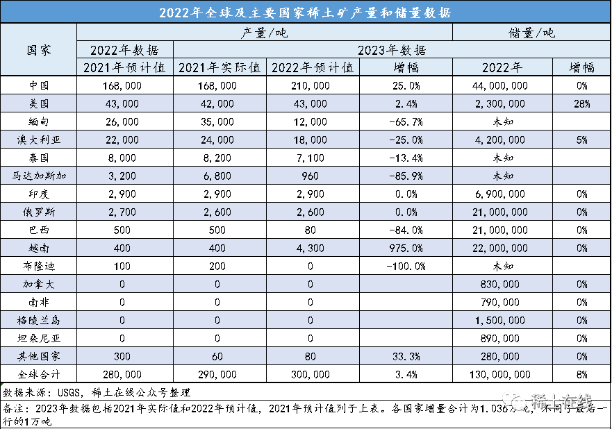 近日,美國地質(zhì)調(diào)查局(USGS)發(fā)布了2022年度全球稀土礦產(chǎn)量、儲量及美國稀土礦情況,下面對主要數(shù)據(jù)進(jìn)行整理,供參考。