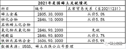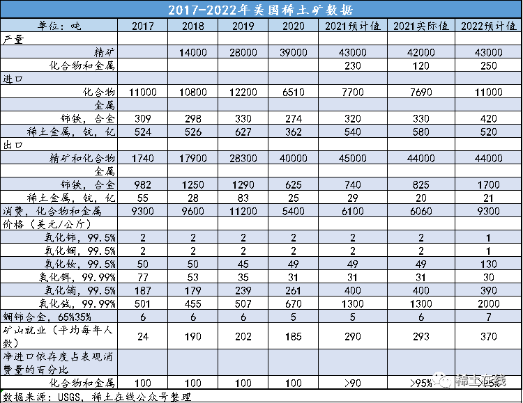 進(jìn)口化合物11000噸,增加43%,進(jìn)口金屬合計(jì)940噸。進(jìn)口稀土化合物及金屬估算值為2.0億美元,比2020年的1.6億美元大幅增加25%。(大量稀土作為永磁體用在制成品中進(jìn)口,未計(jì)算在內(nèi))