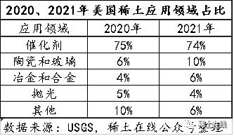 消費(fèi)量9300噸,較2021年6100噸有53%增長,2021年稀土應(yīng)用領(lǐng)域如下表所示(未披露2022年數(shù)據(jù))。