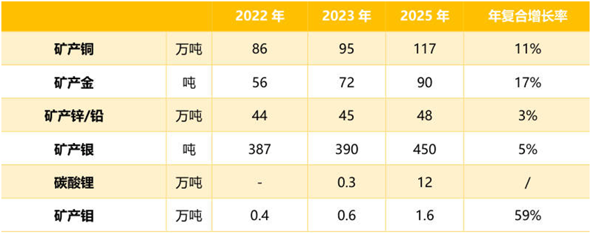 紫金擴(kuò)產(chǎn)計(jì)劃很明確,卡莫阿-卡庫(kù)拉銅礦等諸多世界級(jí)礦山仍在擴(kuò)張期,去年收購(gòu)南美洲最大的在產(chǎn)金礦之一 Rosebel 金礦、收購(gòu)國(guó)內(nèi)最大金礦海域金礦30%權(quán)益,收購(gòu) 20%股權(quán)成為招金礦業(yè)第二大股東,強(qiáng)勢(shì)收購(gòu)打下了其礦產(chǎn)金第二階的高增長(zhǎng)的基礎(chǔ)。按照2023年1月30日新修訂的《三年(2023-2025 年)規(guī)劃和 2030年發(fā)展目標(biāo)綱要》,明確到2030年綜合指標(biāo)排名進(jìn)入全球一流礦業(yè)公司行列,銅、金礦產(chǎn)品產(chǎn)量進(jìn)入全球 3-5 位,鋰進(jìn)入全球前10位,發(fā)展規(guī)劃清晰,成長(zhǎng)潛力較大。