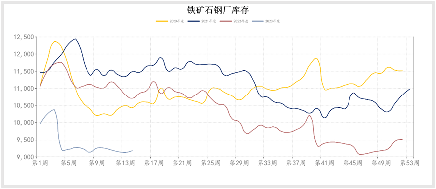 據(jù)mysteel數(shù)據(jù),4月初的一周,其統(tǒng)計(jì)的247家鋼廠高爐產(chǎn)能利用率91.2%,日均鐵水產(chǎn)量245.07萬噸,距離近五年的最高點(diǎn),即2020年8月份的253.3萬噸,只相差8.23萬噸。目前鋼廠鐵礦石總庫(kù)存與庫(kù)銷比維持低位,45港口鐵礦石庫(kù)存去庫(kù)308萬噸至1.32億噸。