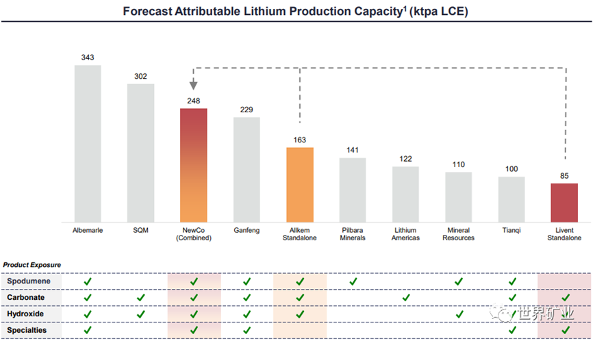 據(jù)測(cè)算,Allkem和Livent合并后,新公司預(yù)計(jì)產(chǎn)能達(dá)24.8萬(wàn)噸碳酸鋰當(dāng)量(LCE),超過(guò)贛鋒鋰業(yè)(22.9萬(wàn)噸)和天齊鋰業(yè)(10萬(wàn)噸),位居世界第三,僅次于雅寶(Albemarle)和智利礦業(yè)化工(SQM)。