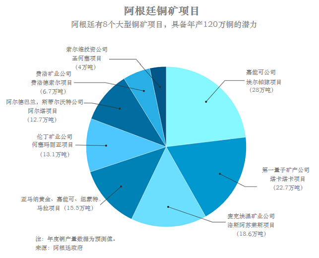 阿根廷政府預(yù)測(cè),這個(gè)南美國(guó)家擁有的銅礦項(xiàng)目可支撐其在2030年產(chǎn)銅79.3萬(wàn)噸,雖然低于最大產(chǎn)銅國(guó)智利,但是接近澳大利亞和贊比亞的產(chǎn)量。