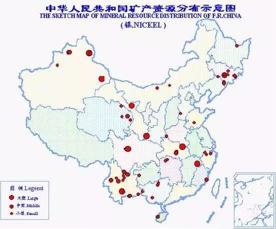 中國(guó)鎳礦資源不能滿足需要。總保有儲(chǔ)量鎳784萬(wàn)噸,居世界第9位。鎳礦產(chǎn)地有近100處,分布于18個(gè)?。▍^(qū))。