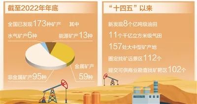 礦產(chǎn)資源是經(jīng)濟社會發(fā)展的重要物質(zhì)基礎(chǔ),礦產(chǎn)資源勘查開發(fā)事關(guān)國計民生和國家安全。截至2022年年底,全國已發(fā)現(xiàn)173種礦產(chǎn);2022年,我國近四成礦產(chǎn)儲量均有上升……日前發(fā)布的《中國礦產(chǎn)資源報告(2023)》顯示,我國推進實施新一輪找礦突破戰(zhàn)略行動效果顯著。