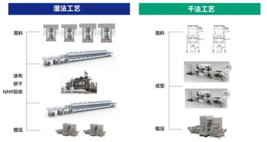 當(dāng)下,電池制造技術(shù)主要有兩種,濕法工藝和干法工藝。