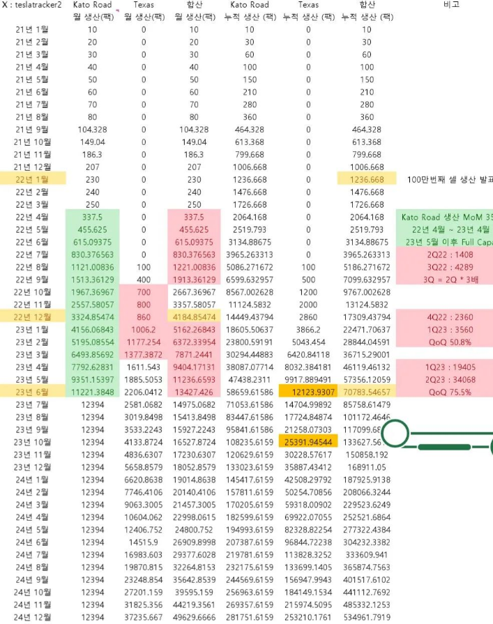 眾所周知,德州工廠目前還只是一條產(chǎn)線在生產(chǎn),到今年年底,另外三條產(chǎn)線也有可能開動。除此之外,有韓國媒體爆料,特斯拉弗洛蒙德工廠的量產(chǎn)能力已經(jīng)達到月800萬只水平。根據(jù)韓媒流出的數(shù)據(jù),到明年年中,加上弗洛蒙德的一條試驗線和工廠對面的新場地新線,特斯拉月產(chǎn)能將達到6,000萬只。