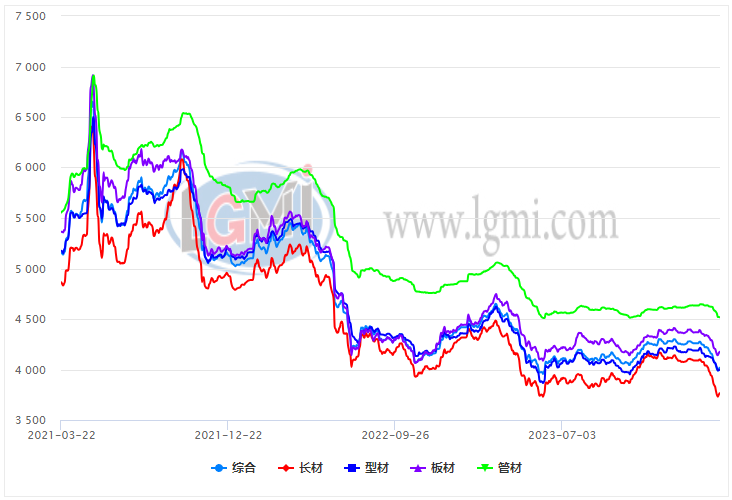 具體來看,蘭格鋼鐵長(zhǎng)材絕對(duì)價(jià)格指數(shù)為3766元,較去年同期下降14.8%;蘭格鋼鐵型材絕對(duì)價(jià)格指數(shù)為3997元,較去年同期下降12.5%;蘭格鋼鐵板材絕對(duì)價(jià)格指數(shù)為4175元,較去年同期下降11.1%;蘭格鋼鐵管材絕對(duì)價(jià)格指數(shù)為4518元,較去年同期下降10.6%。