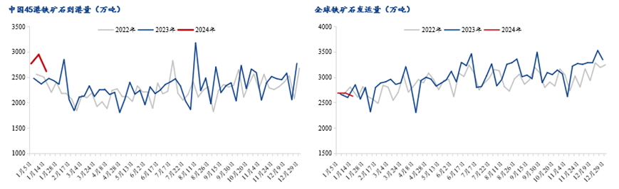 根據(jù)Mysteel全球鐵礦石發(fā)運量數(shù)據(jù)顯示,近期由于臺風影響,部分礦山港口檢修,最新周度全球鐵礦發(fā)運總量大幅回落。上周(4.8-4.12)全球發(fā)運量周值為3245.3萬噸,周環(huán)比減少142.5萬噸。但今年累計發(fā)運情況看,全球鐵礦石發(fā)運累計同比增量為1512.5萬噸,其中巴西累計同比增量為1254.8萬噸,非主流累計同比增量為1284.5萬噸,澳洲則表現(xiàn)為累計同比減少1026.8萬噸。受天氣因素影響,預(yù)計近幾周全球鐵礦石發(fā)運量有所下降,待澳洲颶風擾動暫告一段落后,預(yù)計發(fā)運水平還會有顯著增加。到港量與全球發(fā)貨量數(shù)據(jù)相似,根據(jù)Mysteel45港鐵礦石到港量數(shù)據(jù)顯示,上周(4.8-4.12)值為2437萬噸,周環(huán)比減少4萬噸。今年以來,45港鐵礦石到港量累計同比增加1994萬噸,其中澳洲累計同比減少1120萬噸,巴西累計同比增加1836萬噸,非主流累計同比增加1278萬噸。