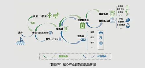 “鎂經(jīng)濟(jì)”是新能源與新材料相融合的綠色循環(huán)經(jīng)濟(jì)。“鎂經(jīng)濟(jì)”綠色循環(huán)產(chǎn)業(yè)鏈的源頭,從原料講是取之不盡的海鹵水,從能源講是用之不竭的可再生能源。利用鎂既是工業(yè)材料又是能源載體的雙重屬性,“鎂經(jīng)濟(jì)”可同時(shí)實(shí)現(xiàn)新能源和新材料兩大產(chǎn)業(yè)的綠色循環(huán)、優(yōu)勢(shì)整合:既解決了風(fēng)光電的儲(chǔ)能難題,又將無(wú)法處理的鹽化工行業(yè)廢棄物苦鹵“變廢為寶”,變成可帶動(dòng)國(guó)民經(jīng)濟(jì)眾多領(lǐng)域?qū)崿F(xiàn)產(chǎn)業(yè)升級(jí)的重要基礎(chǔ)材料。