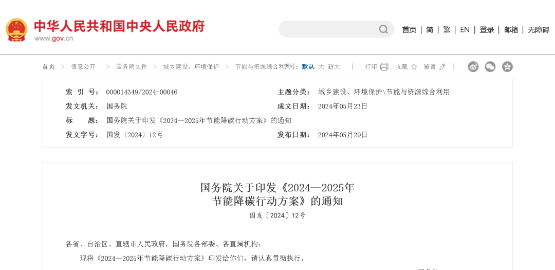 為貫徹落實(shí)黨中央、國(guó)務(wù)院決策部署,錨定“十四五”節(jié)能降碳目標(biāo)任務(wù),加大節(jié)能降碳攻堅(jiān)力度,分領(lǐng)域分行業(yè)實(shí)施節(jié)能降碳專項(xiàng)行動(dòng),更好發(fā)揮節(jié)能降碳的經(jīng)濟(jì)效益、社會(huì)效益和生態(tài)效益,為實(shí)現(xiàn)碳達(dá)峰碳中和目標(biāo)奠定基礎(chǔ),國(guó)家發(fā)展改革委會(huì)同有關(guān)方面研究起草了《2024—2025年節(jié)能降碳行動(dòng)方案》,經(jīng)國(guó)務(wù)院常務(wù)會(huì)議審議通過(guò)后,近日由國(guó)務(wù)院印發(fā)。