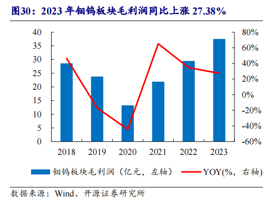 鉬鎢板塊方面,開源證券研報(bào)顯示,去年,洛陽鉬業(yè)全年鉬鎢產(chǎn)量合計(jì)2.36萬噸,營(yíng)收為86.11億元,同比增長(zhǎng)23.63%,毛利為37.51億元,創(chuàng)歷史最高紀(jì)錄。