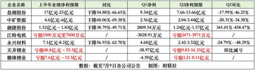 7月10日,另一鋰業(yè)“龍頭”贛鋒鋰業(yè)發(fā)布公告,預(yù)計(jì)上半年凈利虧損7.6億元–12.5億元,上年同期盈利58.5億元。