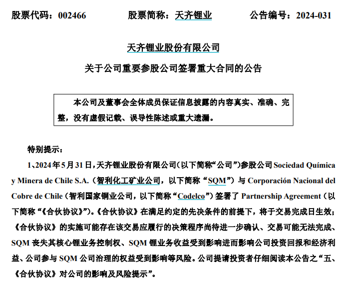 無(wú)獨(dú)有偶。前段時(shí)間,另一礦企天齊鋰業(yè)也遭遇了相似的海外資產(chǎn)權(quán)屬的問(wèn)題。作為SQM(智利化工礦業(yè)公司)的第二大股東,天齊鋰業(yè)在不知情的情況下,SQM與Codelco將組建由政府控制的合營(yíng)公司,共同開(kāi)發(fā)鋰礦資源。