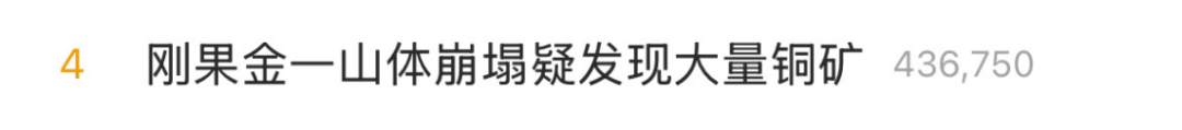 近日,有多家媒體報道,剛果(金)加丹加省一座山體崩塌,疑似發(fā)現(xiàn)大量銅礦,簡直是老天爺賞飯吃。該消息也登上了當(dāng)日微博熱搜。