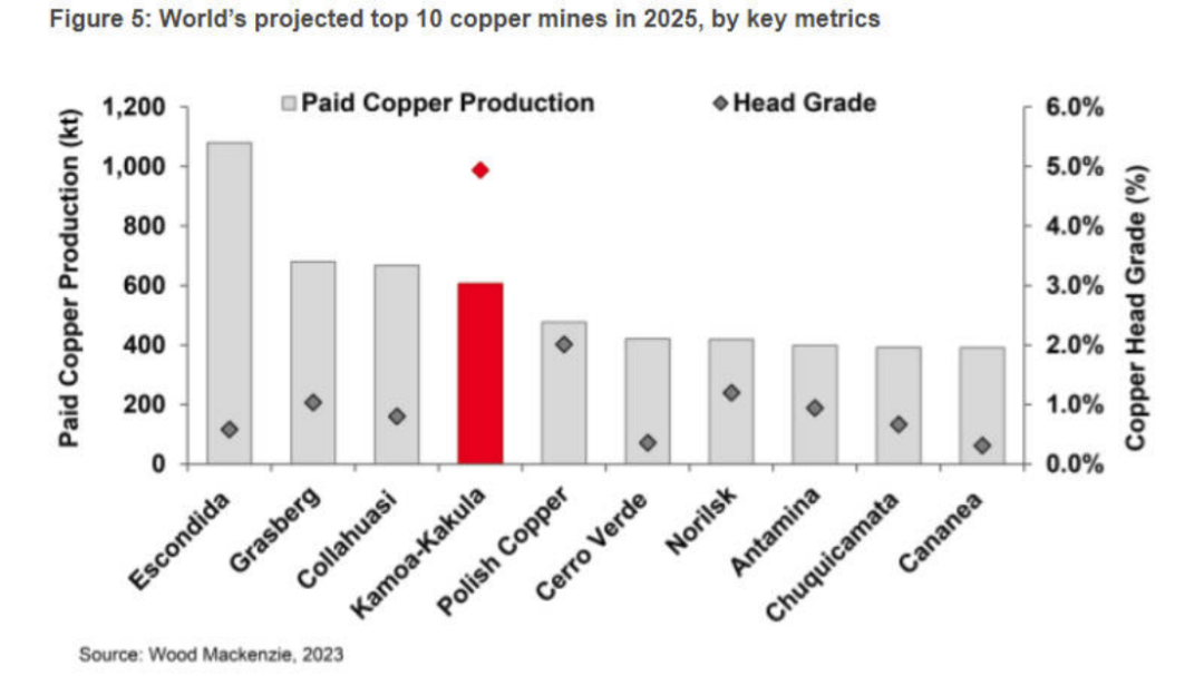 紫金礦業(yè)的卡莫阿 -卡庫拉銅礦以及科盧韋齊銅(鈷)礦,均位于剛果(金)的盧阿拉巴省,2024年卡莫阿-卡庫拉的銅精礦年產(chǎn)量月42.5-45萬噸,當(dāng)?shù)V山三期擴(kuò)建完成后,未來10年平均產(chǎn)量將提升至約62萬噸/年,使卡莫阿銅礦成為全球第4大銅礦山、非洲大陸最大銅礦。