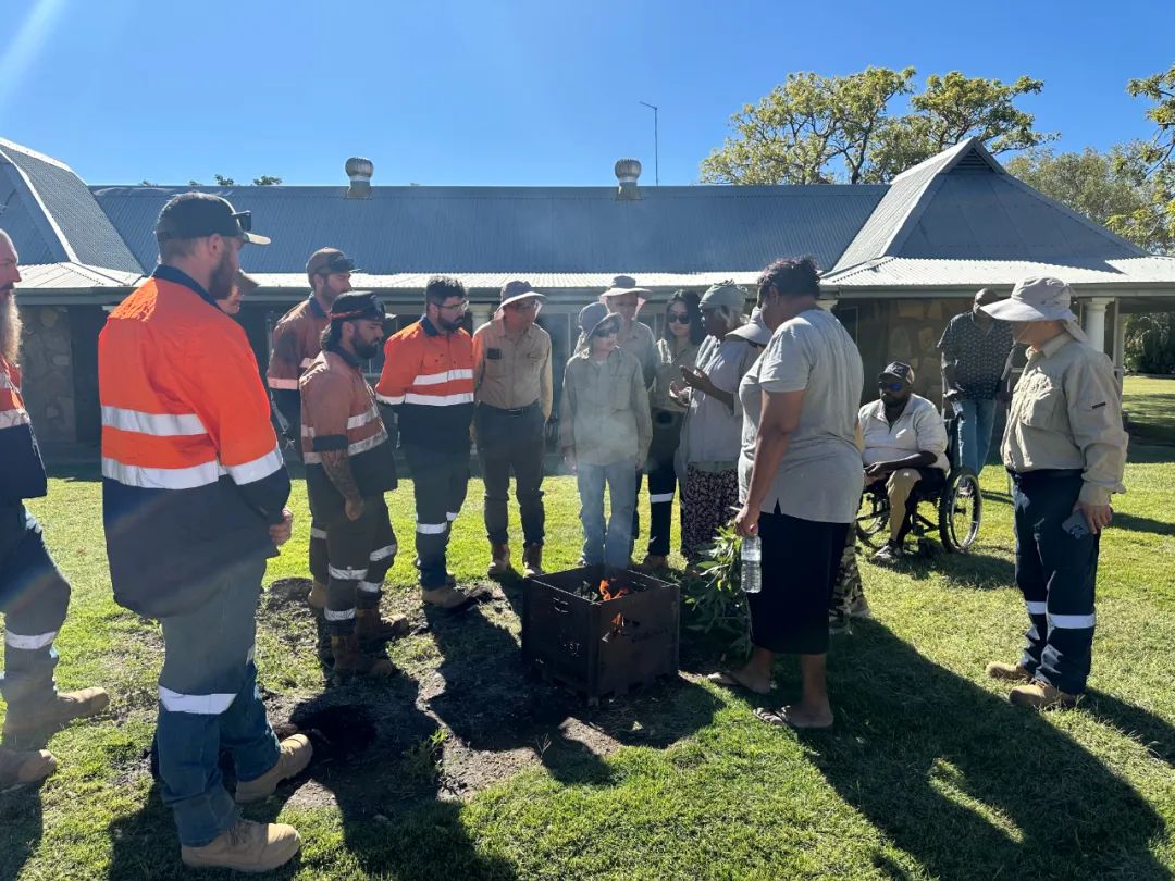 開(kāi)鉆期間,當(dāng)?shù)毓拍岚驳贤林M織舉辦了莊嚴(yán)的傳統(tǒng)儀式和土著文化培訓(xùn),對(duì)中方人員的到來(lái)表示熱烈歡迎。項(xiàng)目組全體成員、子午線礦業(yè)有限公司董事Gina、鉆探公司代表等受邀參加歡迎儀式。土著長(zhǎng)老Helen女士發(fā)表講話,對(duì)西色國(guó)際多年來(lái)尊重、保護(hù)當(dāng)?shù)卦∶裎幕z產(chǎn)的舉措表示感謝,將繼續(xù)友好支持公司在該區(qū)的勘查活動(dòng)。