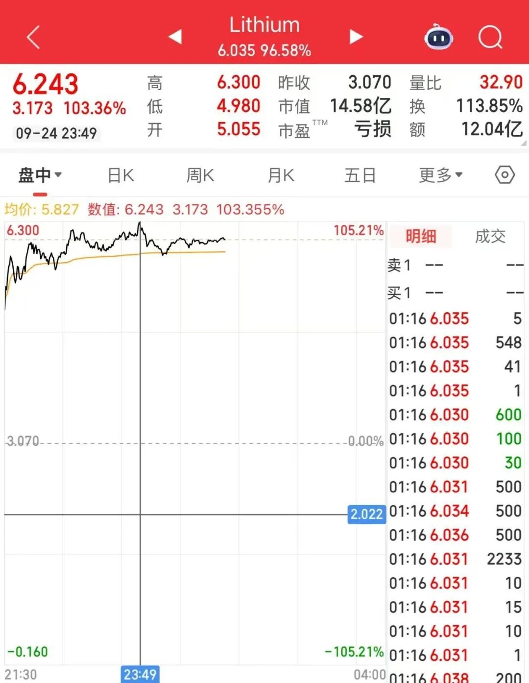 截至今晨收盤,美洲鋰業(yè)股價(jià)上漲95.6%。