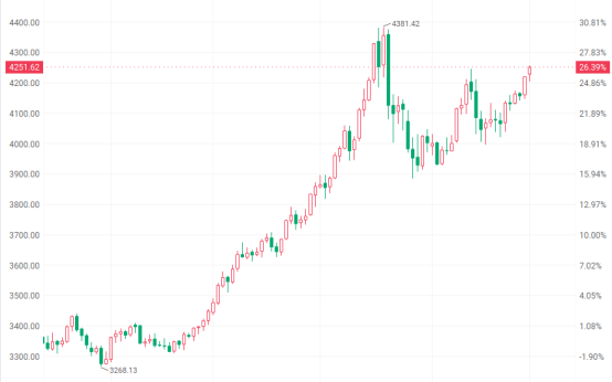 黃金市場同樣獲得機構投資者強烈看好。今年至今,金價已累計上漲約57%,是幾十年來表現(xiàn)最好的一年之一。這種上漲由一系列因素推動,如央行增加購買、通脹居高不下,以及投資者對美國經濟實力和關稅問題的擔憂。