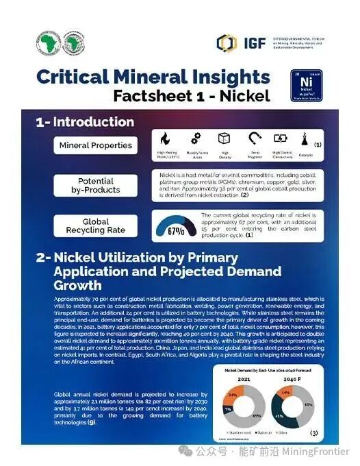 非洲豐富的礦產(chǎn)資源能夠推動(dòng)工業(yè)增長,但由于開采活動(dòng)占據(jù)主導(dǎo)地位,而增值活動(dòng)有限,其巨大潛力仍未得到充分開發(fā)。這些由非洲礦業(yè)論壇 (IGF) 和非洲開發(fā)銀行聯(lián)合編寫的出版物,深入分析了鎳、銅、鈷、鋰、鋁土礦、天然石墨、鐵礦石、錳、磷酸鹽、釩、鉑族元素和稀土元素等礦產(chǎn)資源。