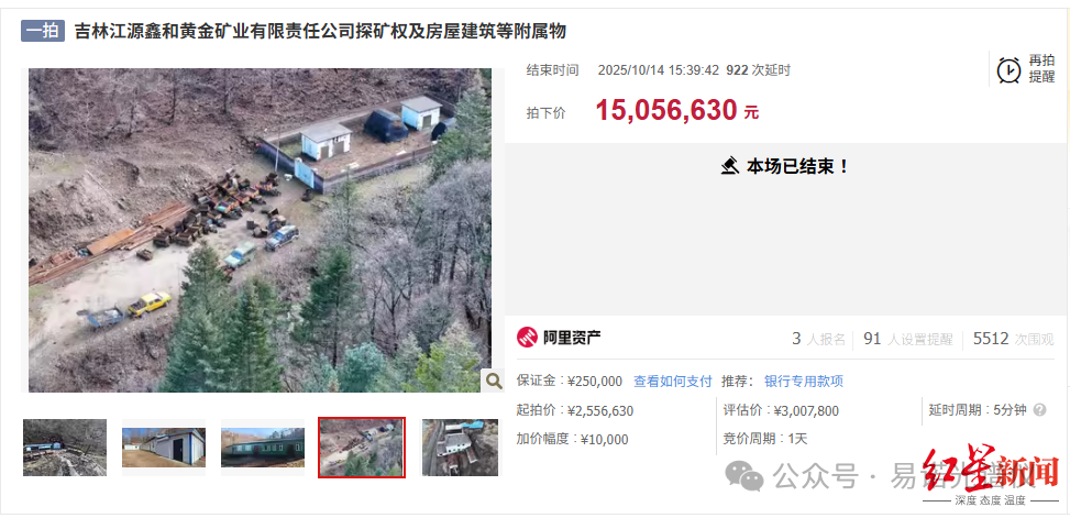 成交價1500萬元:出價931輪,溢價率達489%!吉林一金礦探礦權(quán)等被拍賣