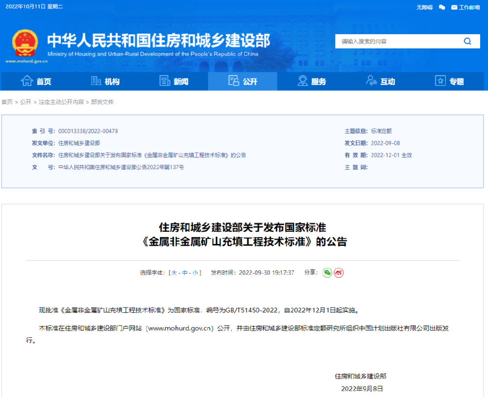 重磅來襲!我國首次發(fā)布金屬非金屬礦石填充工程技術(shù)標(biāo)準(zhǔn)